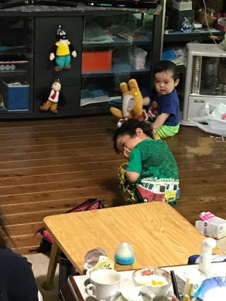 | 2017/06/19(月) | 今日は娘の長男の3歳の誕生日だった。それで昼からケーキなどを持参した。往復高速を使わず下の道を行く。真夏の暑さだった。 9ヶ月になる次男は下痢で保育園お休みで、にこにこして私達を迎えてくれた。この子はハイハイが苦手で、玩具を持って動くように仕向けないと座りっぱなしだ。長男の時とはまた違っておっとりしている。娘に似ている様子。それぞれ面白い。 4時保育園から帰ってきた長男は現在恐竜に興味があって、大きな恐竜図鑑を広げて恐竜の名前一つ一つを教えてくれる。 車が大好きで、車に没頭してたのが嘘のように恐竜に焦点が移ってしまった様子だ。きっと保育園の友だちと、そんな恐竜の話しをしているのだろうか。保育園ではおむつは取れているようだ。 夜家族でケーキを囲んでいる写真が送られてきた。3本のローソクの火を2人の幼子がじーっと見詰めている写真だ。たった3本か・・私はあと60本のローソクが必要な年になってしまった。日々怠惰に過ごしていると人生早かなあ・・ 午後4時半には出て、途中の小川の実家で草むしり。先日草刈りしてもらったのに成長が早いこと。・・田舎の草庭にはうんざりしてしまう。 3 |
