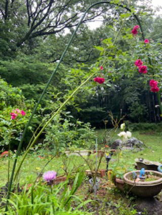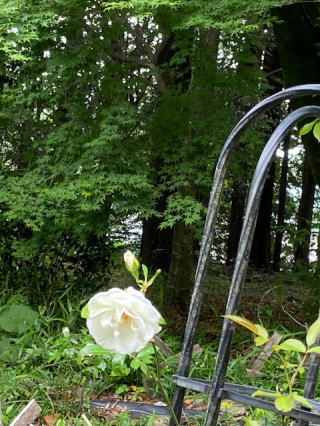| 2021/05/22土 | 雨が降らない一日だった。雲多く、肌寒く、庭にしゃがむと見知らぬ黄色の花を咲かせる野花に小さな蜂がとまって蜜でも吸っているのだろう。目を戻して森の入り口をみると・・ 白い薔薇は控えめにひっそりと森の奥に咲く。派手な色の薔薇は人の目を引きつけて目立つがそれはあっという間に視野から消える。強風や雨にも弱い。栄養失調のような小さな白い花びらの薔薇のほうが命が長いようだ。 今日は野菜育て名人が来て小さなトマトの木をみて、あそこでは育たない地植にしなさいとヒントを与えて帰っていった。ご主人様は午後から会議で猫のハナと留守番なので、外に出ようにも監視が厳しく、なかなか思うように作業に移れない。 |