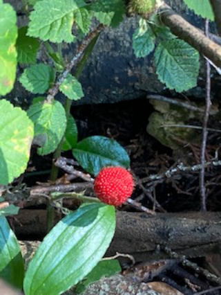| 2021/05/29土 | 草刈りしていたら野生の苺が真っ赤に熟れていた。木イチゴか。植物の野苺とはちょっと違う。山小屋周囲と小川の実家の草刈りに忙しい一週間だった。草刈り中にお客様あり、下の水くみ場から歩いてこられたそうだ。車は通れないと思われたのかな。いつも娘は生木に新車を傷つけたくないと言って歩いてくる。 梅雨でジメジメしていたが、梅雨の中休み、天候はすっかり回復して真っ青の空を眺めながらの散歩は気分が晴れ晴れする。俵山の地震後の崩落のあとは自然修復もしないまま。下の草原は、しばらくの間は新設「大切畑ダム」の土置き場にかわる。 |