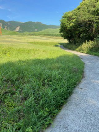 | 2021/05/27木 | 昨夜から今朝までずっと雨が降りっぱなしだった。午後のブログ会議が終わってすぐにたんぼ道に出て散歩開始。開始後2分後には、真っ黒いニョロニョロと遭遇。お互い驚き合い。ワア!と声を上げて私が道に横たわっていた棒状の黒い元気者の上をぴょんぴょん跳ねて通り過ぎた。次のニョロニョロと出会わないよう、なるべく水辺は避けて、舗装道路を歩いて、木部公園のブランコを10回揺らして帰宅。5136歩 目標は達成桜十字病院裏道の天明新川右岸は再び草が生えている。その対岸はそれほどの草がないが、日照時間の差だろうか。金峰山は雲がかかり明日の悪天を予想。(といつも友達がいうので)・・でも段々空は明るくなってきた。普段の散歩道では田植えの準備が進んでいる。 |