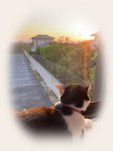 逮捕されたハナは満足したのか、今日はもう外に出ようとはしなかった。暑さを避けて風通し良い場所でごろんごろんして過ごしている。PM6過ぎに144/430Mhzのトランシーバー持参で、たんぼ道散策。川辺の道には今日も真っ黒のニョロニョロも散歩中だった。帰り着いてから冷蔵庫から冷たく冷やした缶ビールを、コップに入れて2階の西向きの窓辺に腰掛けて、微風を受けながら沈む太 陽を眺めているPM7.。冬は普賢岳の左に沈むが、夏はずっと右に沈む、また一日の幕が閉じる。あと何度の日暮れを見ることだろう。猫もまねして夕日を眺めている。 |