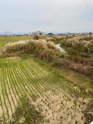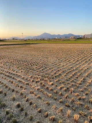 | 2021/10/25月 | 朝から文化祭の賞品の発送準備。不足分の買い足しなど行い、郵送代計算のため1通だけ送った。その封筒書きの文字の下手さにへたり込む思いだ。この偏は跳ねるのか?長くするのか・・すっかり分からないまま自己流の文字で書き上げてしまった。(笑われるのは承知だが恥ずかしい)もう少し常識というのに耳を傾けるべきだった。 なんとか見繕って帰宅後の散歩道はすっかり霜を待つ、稲刈り修了後の田んぼばかり。寒くなって霜がふると稲穂を刈り取ったあとは堅く氷をこする音になる。遠くの阿蘇山は今日は黒い筋の雲を垂れ流すだけの静かな山だった。 |