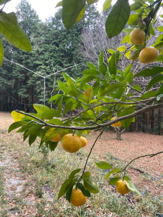 | 2021/12/18土 | 1日送れで山小屋へ到着。寒さ3度の厳寒の中、重ね着して、家の周りを巡っていると、山道を行く近所の保育園児たち。元気な声が森に響く、帰りは1時過ぎにこの道を通る。大体一人は帰り道は泣きながらである。山育ちの子どもは体力も付けて将来は大いに野性的に成長し続けてくれるだろうか。泣き虫も大変だが、山には猪もいる。前後注意して歩くのもだが引率の先生もたいへんだ。そん移動中の子らの叫び声を聴きながら、柚子の実を釣り竿を伸ばしてずっと上の枝を揺らすと、真っ黄色に熟した柚子がポロポロと落ちてくる今日は11個で我慢して、柚子ジャムを作って貰おう。来週は最後だから全て落としてしまおう。 |