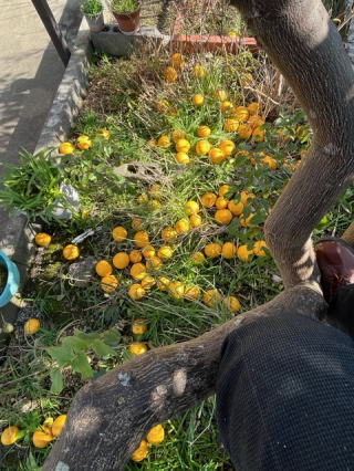 | 2021/12/28火 | 早朝に年賀をポストにいれる。(機種変更の携帯も黄色い箱もポストへ)。その後ゴミ捨てお終わって、お隣さんの庭にある木に登って八朔ちぎりをした。ご主人がいつも収穫されていたが、一月ほど前に亡くなられたので、奥様が登れないので、私がボランティアを申し出て、木登りした。昨年も登って手伝った。だから木の枝の順番も知っているから、収穫を楽しんだ。青空の下で、八朔ちぎりするのは気分がよい。大体もぎ取るか剪定挟で切り取るのだが、大きな重量のあるのひ当たると思わずニコリとする。小さなのは残そうか迷ったが、霜や雪で凍結したらまずくなるので思い切ってちぎってしまった。足下に増えていく黄色い収穫物を眺めながらの一時は私の大切なレクレーションの時間だった。枝から落ちて溝へドボンという思いもあったが、まだまだ大丈夫!よい一日だった。ハッサクは日本原産の蜜柑だそうだ。それと山都町に八朔祭りがある。それは夏場だけど、何か関係あるのだろうか・・解説では八朔(はっさく)とは八月朔日の略で、旧暦の8月1日のこと。で秋分の日前後を差す季節のことらしいが、蜜柑の八朔との関係は?と先を読むと「ハッサクは、8月1日ごろに食べられるようになったため、この名が付いた」とあるが、収穫は12月なのだがなあ????である。小さいことはさておいて、 その後散歩へ出て6600歩。まあまあ運動は出来た。 |