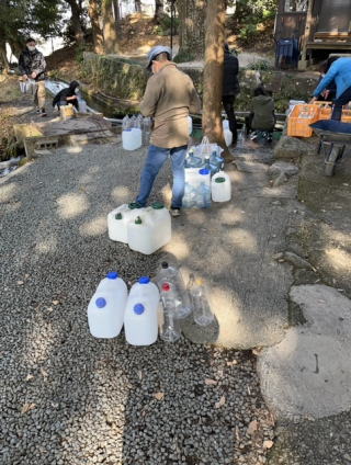 | 2022/01/10月 | 12月27日以来久しぶりに西原村の山小屋へ行ってきた、集落の年会費を払うためとギャラリーの管理のため。区費は今年の担当の方宅へ、登るついでに塩井社湧水に水くみに並んだ。我が山小屋はこの水源の水を使っているが目下、水道管の凍結破壊防止のためポンプ以上を水抜きし寒さに備えることにしている。今日は気になっていたポンプの◇ボルトの水抜き穴を回して、水気がないことを確認したのがOKだった。水曜くらいからまた寒気がくるというのでの確認だ。それにしてもこの袴野塩井社水源の水の人気も再確認。私もこの水が気に入ってカフェをする気になったので、正解だったかなと自己満足。40分ほど待ってやっとタンクに水入れが出来た。来るなら休日でなく普通の日が汲み人が少なくてよさそうだ。 |